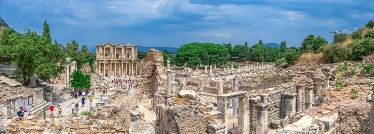 You will also visit the small house of the Virgin Mary, where she is said to have spent her last days after Saint John took her to Ephesus following the death of Jesus. The house is located on Mount Bulbuldagi (Koressos) and is a popular pilgrimage site for Christians and Muslims with a captivating spiritual atmosphere. Once on the grounds of Ephesus, walk through the ruins with your guide and see sights such as the Odeon Theater, which in its day seated up to 1,400 spectators. Admire the beautiful Roman statues and decorations carved into marble slabs at the Pollio Fountain. Another highlight is the Celcius Library, completed by the Romans in 117 AD. The building has the most impressive facade with columns, statues, and intact windows. You will have the opportunity to visit the Terrace Houses, a private area in the ancient city of Ephesus that resembles Roman villas. The floor mosaics and frescoes have been consolidated, and two houses have been opened to the public as a museum. Finally, explore the Greek Temple of Artemis, one of the 7 Wonders of the Ancient World, and visit the Basilica of St. John , built by Justinian I over the tomb of St. John the Apostle.